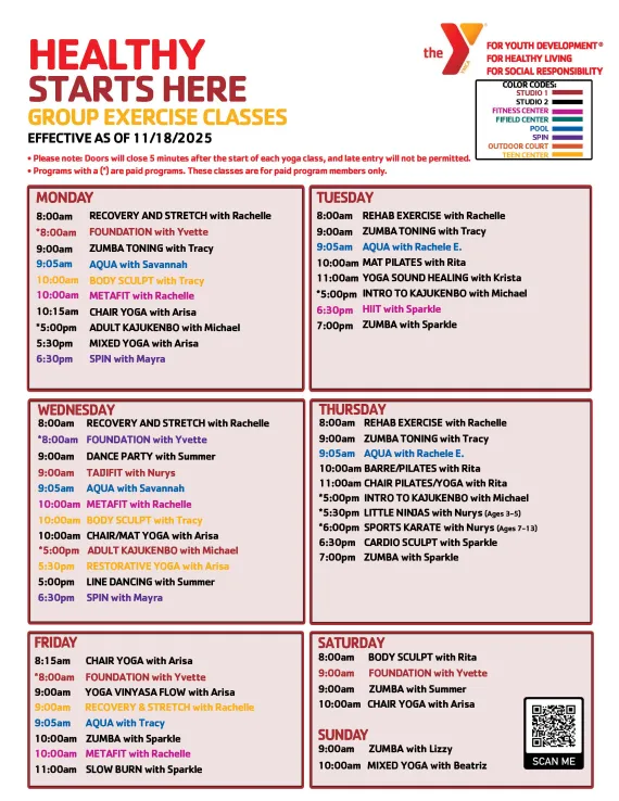 *Please double check the facility-specific group exercise schedules to see which classes are being offered each month.